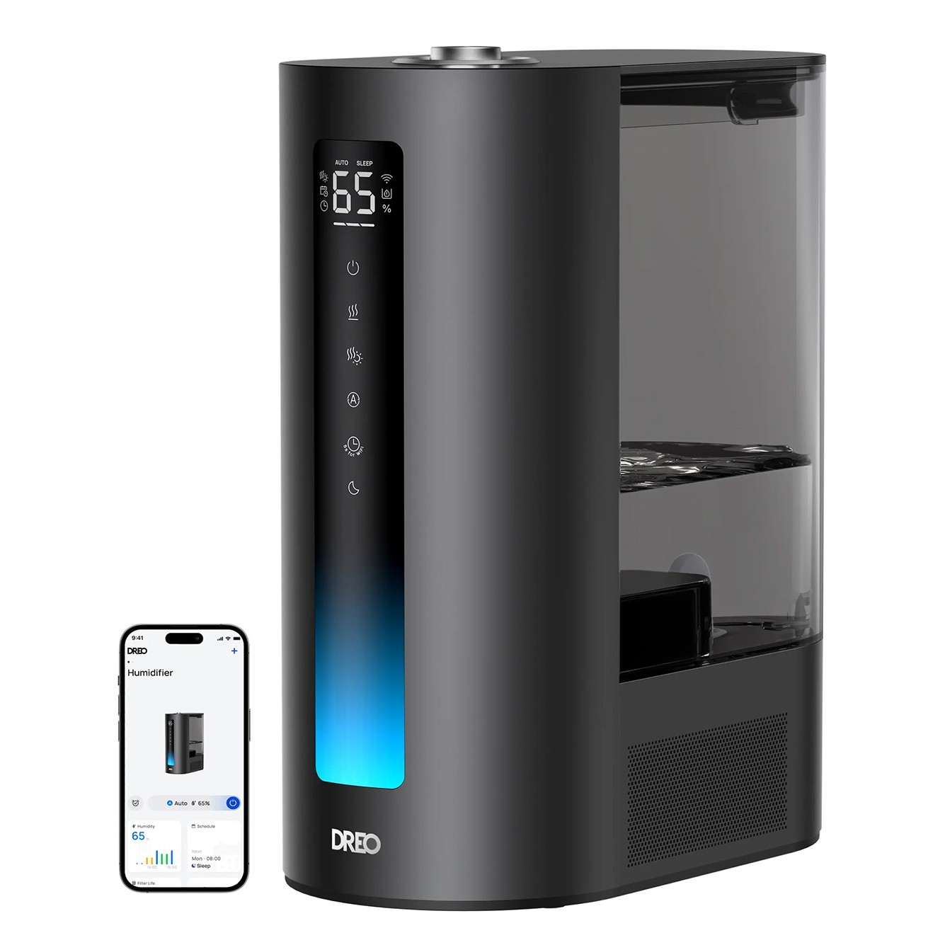 Der DREO HM813S bietet eine moderne Fernsteuerung, mit der sich der Luftbefeuchter komfortabel und flexibel bedienen lässt. Über die App können Betriebsmodi geändert, Zeitpläne festgelegt, die Luftfeuchtigkeit kontrolliert und Einstellungen angepasst werden – ganz ohne direkte Bedienung am Gerät. Zusätzlich ist das Modell mit gängigen Sprachassistenten kompatibel und ermöglicht die Steuerung per Sprachbefehl. Diese Funktionen erhöhen den Alltagskomfort und erlauben es, den Betrieb des DREO HM813S individuell an Tagesablauf und persönliche Anforderungen anzupassen.